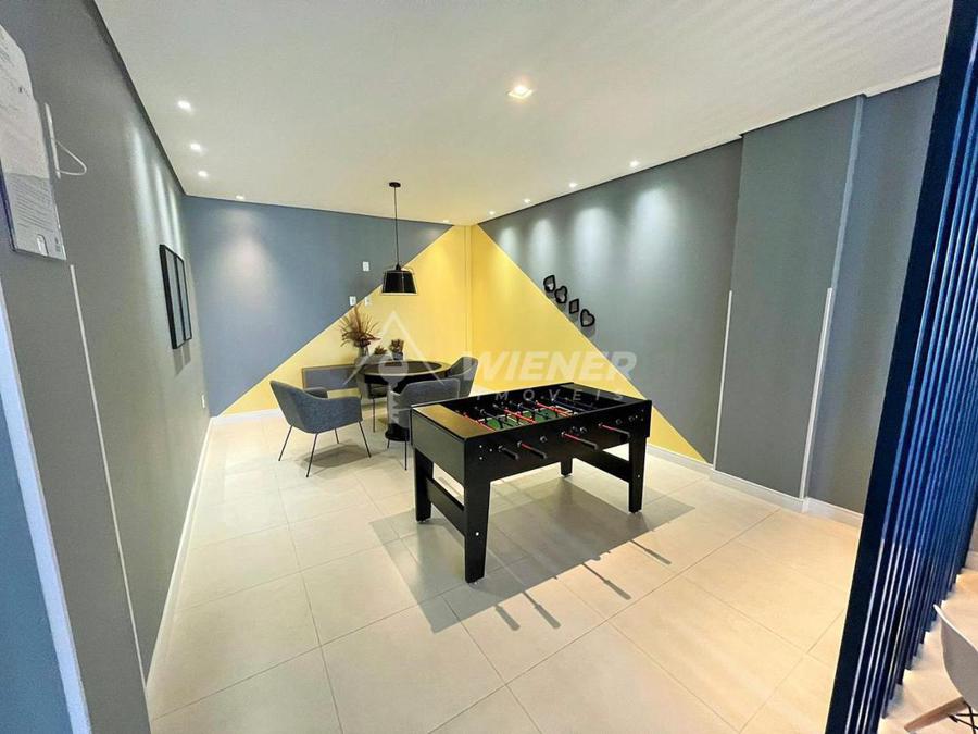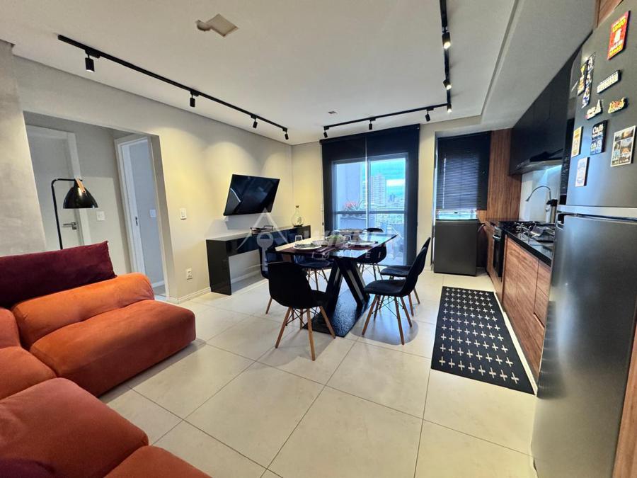 Wiener Imóveis Vende: Ao lado do centro, em bairro padrão A, e com excelentes mercados, colégios no entorno, a quadras da UNIVALI, a minutos da BR 101, um excelente apartamento finamente mobiliado, com 23 dormitórios (1 suíte), sala de estar, sala de jantar, sacada com churrasqueira, cozinha americana, área de serviço, banho social, 1 vaga de garagem - ótima posição solar, apartamento semi novo