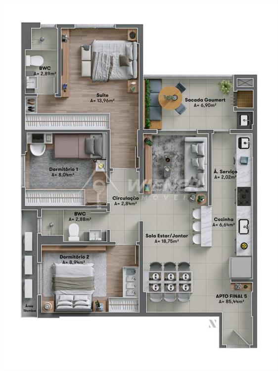 Wiener Imóveis Vende: Em Construção, bairro nobre, Vila Operária, ao lado do centro, excelente padrão de acabamento, construtora renomada, ótimo apartamento com 3 dormitórios (1 suíte), sala de estar, sacada com churrasqueira a carvão, sala de jantar, banho social, cozinha americana, área de serviço separada, 2vagas de garagem, - Piso porcelanato na área social, e áreas molhadas, piso laminado nos dormitórios, espera para Split nos quartos e living. - **Agende já sua visita!!
