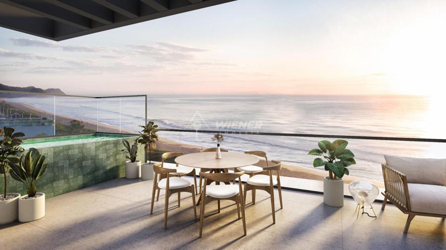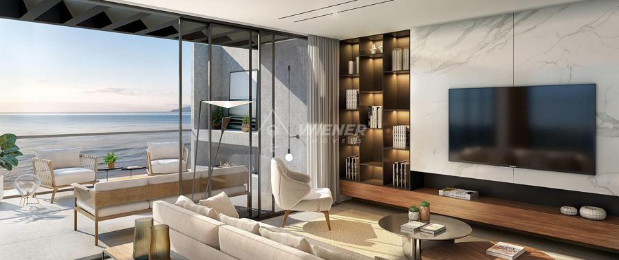 Wiener Imóveis Vende: PÉS NA AREIA, FRENTE MAR, ALTO PADRÃO, PRAIA BRAVA, em uma das praias mais valorizadas do norte catarinense, um amplo apartamento com 3 suítes (1 suíte máster com sacada), sala de estar, sala de jantar, home office com lavabo, cozinha americana, ampla sacada com churrasqueira, lavabo, área de serviço separada, 3 vagas de garagem.