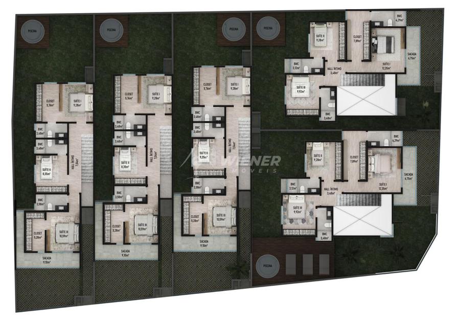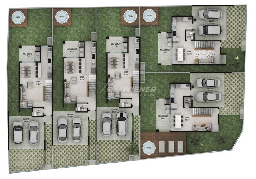 Wiener Imóveis Vende: A poucos metros de grandes mercados, a quadras da prefeitura, e ao lado do centro, amplos sobrados com 3 suítes, (suíte com sacada e closet), sala de estar, sala de jantar, lavabo, cozinha americana, área de serviços separada, área de festas com churrasqueira, piscina.