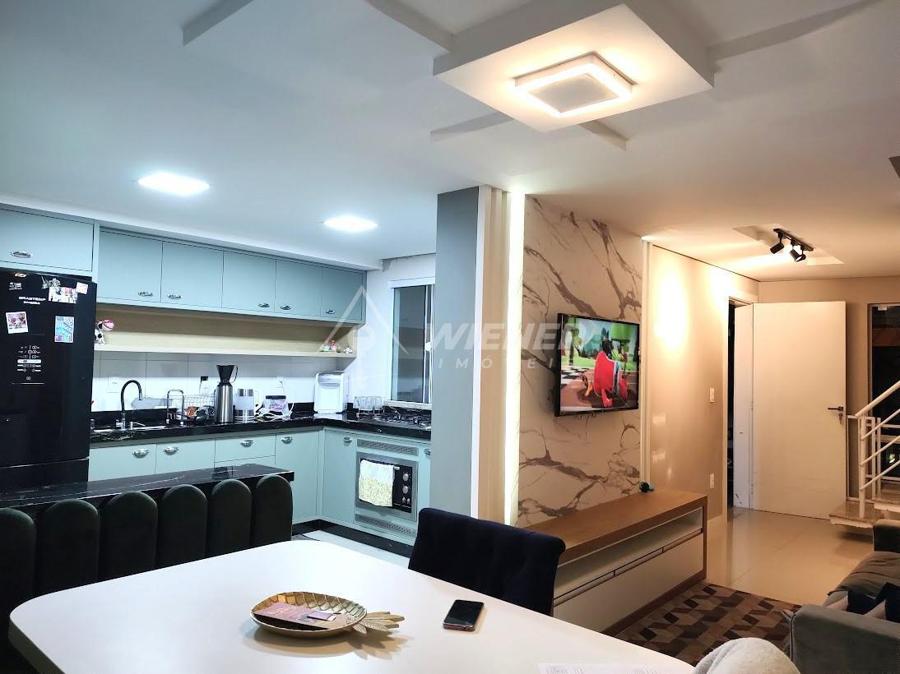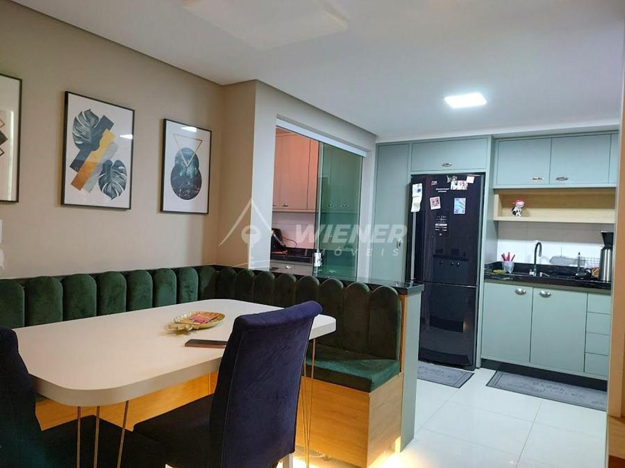 Wiener Imóveis Vende: Bairro nobre, próximo a Universidade Univali, grandes mercados, a 10 min. do centro, um excelente sobrado geminado com 3 dormitórios (1 suíte semi-mobiliado, com sacada), sala de estar, sala de jantar, banho social, lavabo, cozinha americana, área de serviço separada, espaço gormet com churrasqueira, 2 vagas de garagem, ótimo terreno nos fundos com espaço para piscina, pátio na frente.