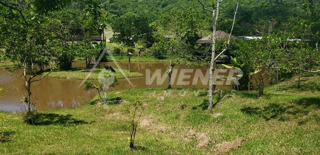 Wiener Imóveis Vende: Invista na sua tranquilidade, e bem estar, junto a beleza natural, ár puro, longe da movimentação urbana, somente a 14 Km do centro de Itajaí, um belo Sítio com lagos, infraestrutura de lazer com amplo galpão com salão de festas, churrasqueira, playground, campo de futebol, tiroleza, grande área plana, e uma casa com 3 dormitórios para um ótimo descanço,