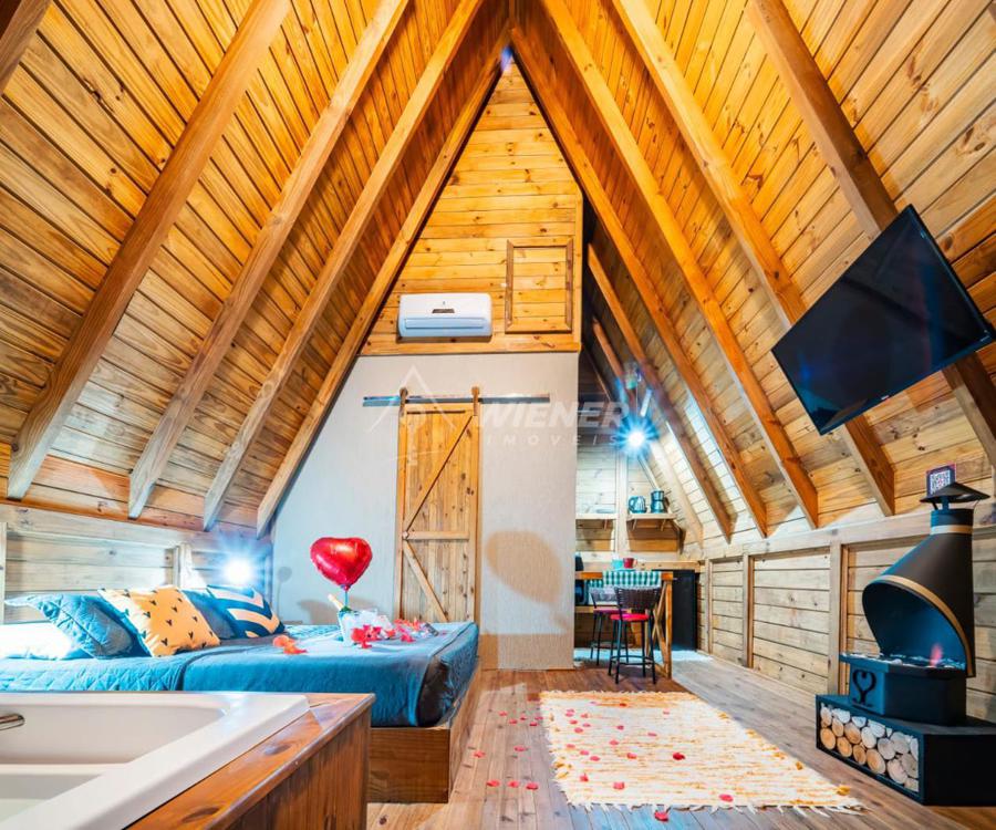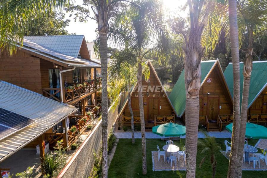 Wiener Imóveis Vende: Para os apaixonados pela natureza e pela praia, a poucos metros da praia de Mariscal ou Canto Grande em Bombinhas, uma charmosa Pousada, Inspirada nos Alpes Suíços, toda mobiliada, decorada e climatizada, com 975,00 m² de terreno e 420 m² área construída, com 11 chalés, os banhos todos com box, hidromassagem, aquecimento solar, excelente pontuação no Booking e no Google, um lindo paisagismo no seu entorno, a casa toda em madeira, 11 vagas de carros -