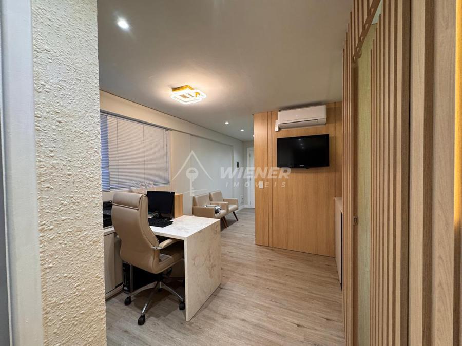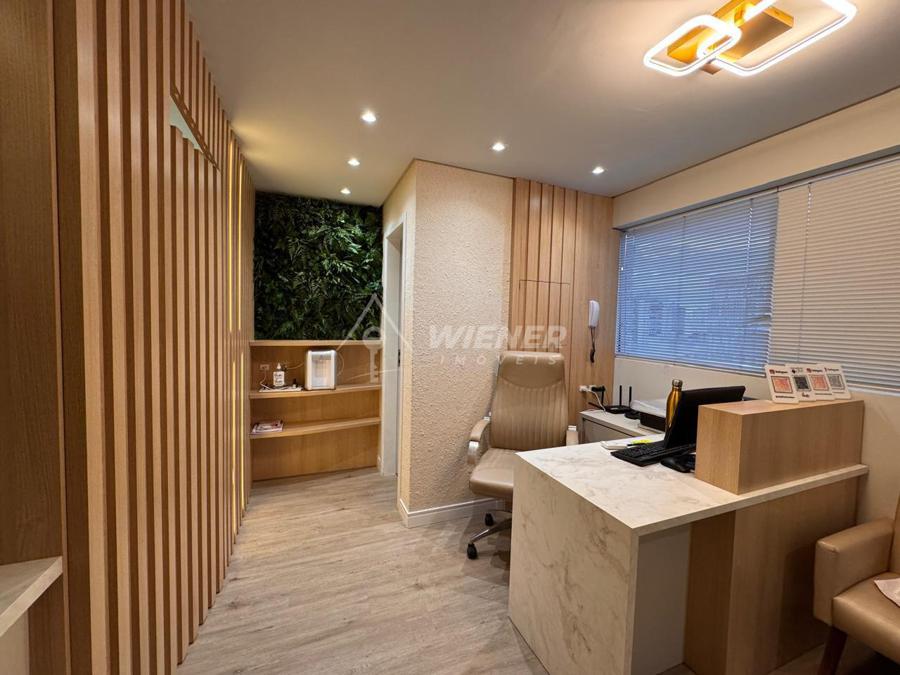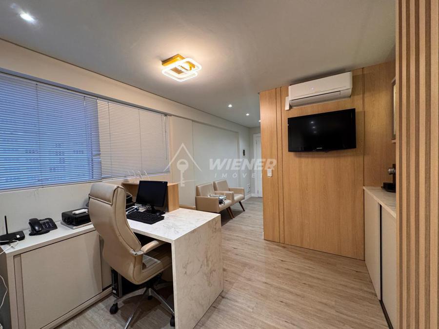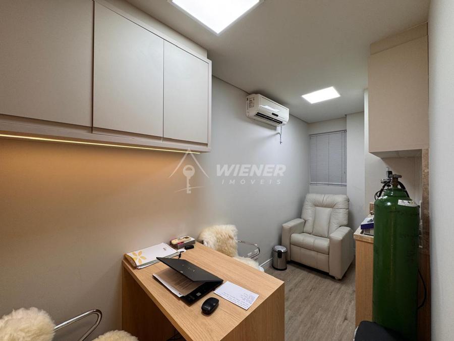 Wiener Imóveis Vende: No centro a metros do Hospital Marieta, do Hospital Infantil e ao lado do Novo Hospital da Unimed, a 3 quadras da Universidade Univali, pronto para uso, sala lindamente mobiliada, toda com móveis planejado, com 3 divisórias (2 salas de atendimento, 1 recepção com sala de espera),excelente produto para investimento e também para locação, pronta para clínicas, mas comporta outros segmentos também, Condomínio bem diversificado com vários segmentos, andar alto, uma ótima sala comercial, 1 lavabo, Condomínio com Portaria 24 horas.